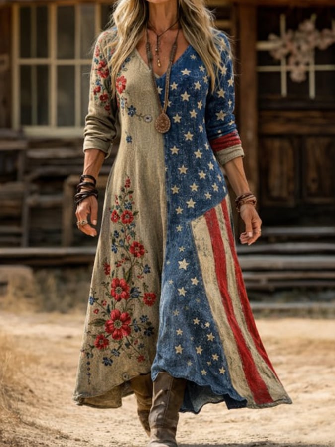 Women'S Casual American 250th Anniversary Commemorative Print Dress