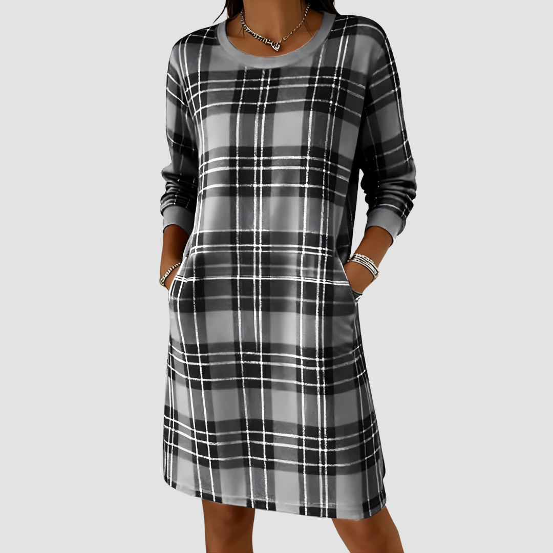 ADELINA CHECKERED SWEATSHIRT DRESS