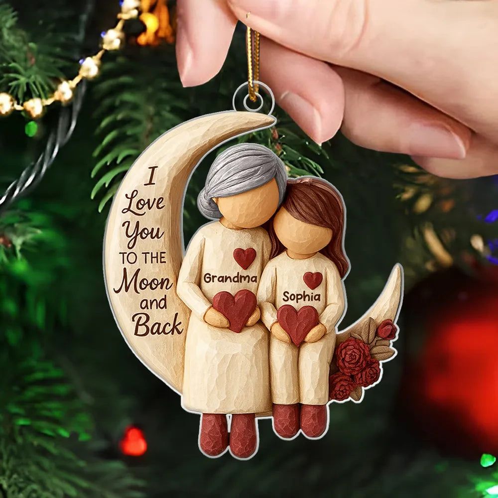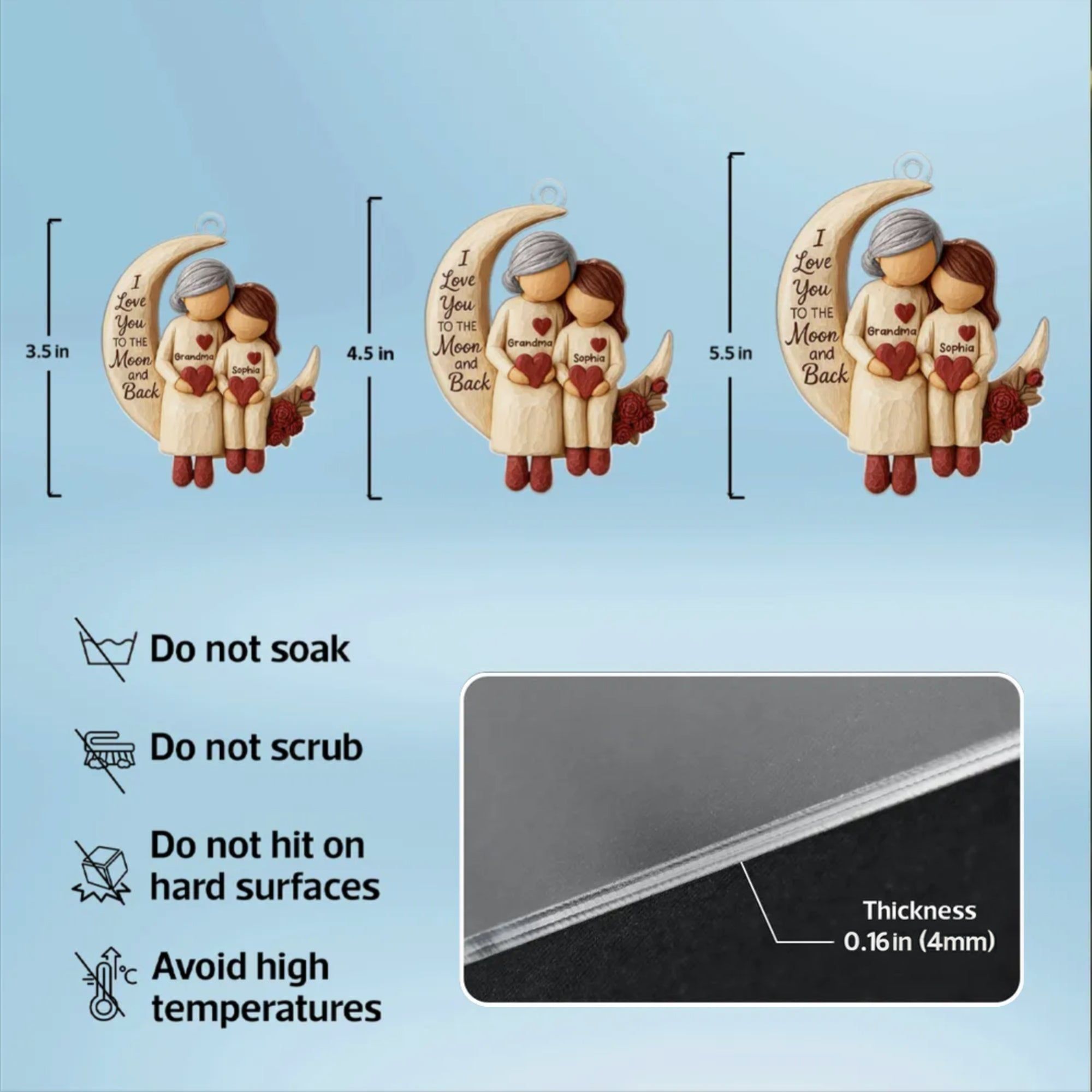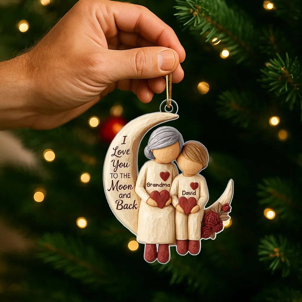 Grandma Grandkids on Moon - Personalized Acrylic Ornament - Heartfelt Christmas Gift for Grandma, Grandkids