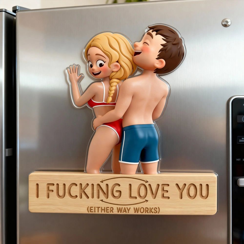 Custom Couple Acrylic Fridge Magnet, Playful Love Quote Refrigerator Accessory, Vibrant Decor & Unique Gift Idea