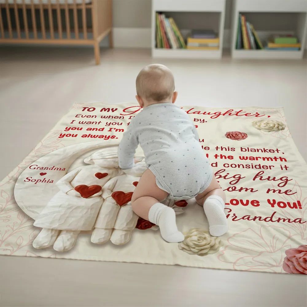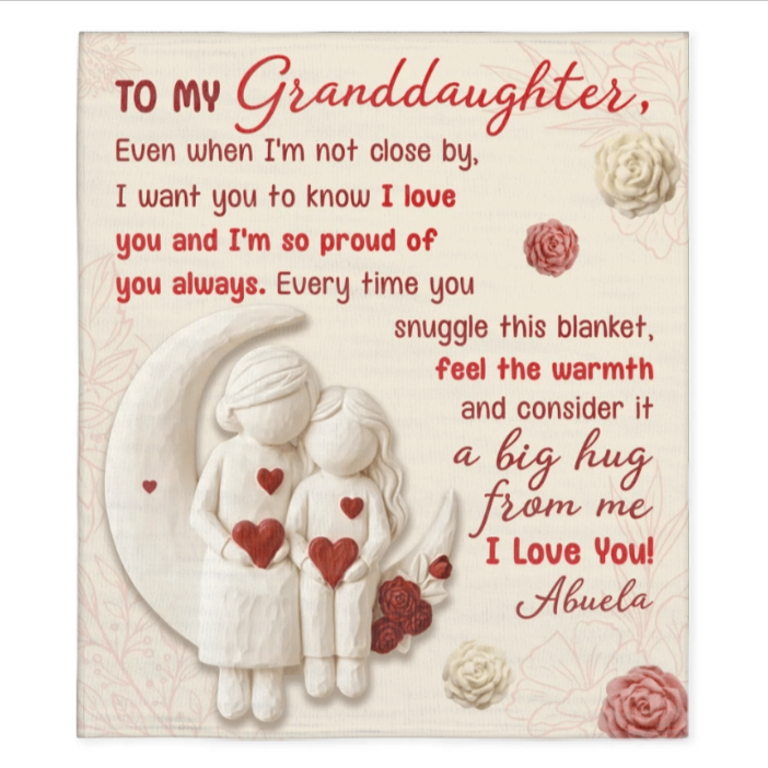 To My Granddaughter Custom Fleece Blanket, Heartfelt I Love You Message & Cute Figurine Art, Unique Keepsake Gift