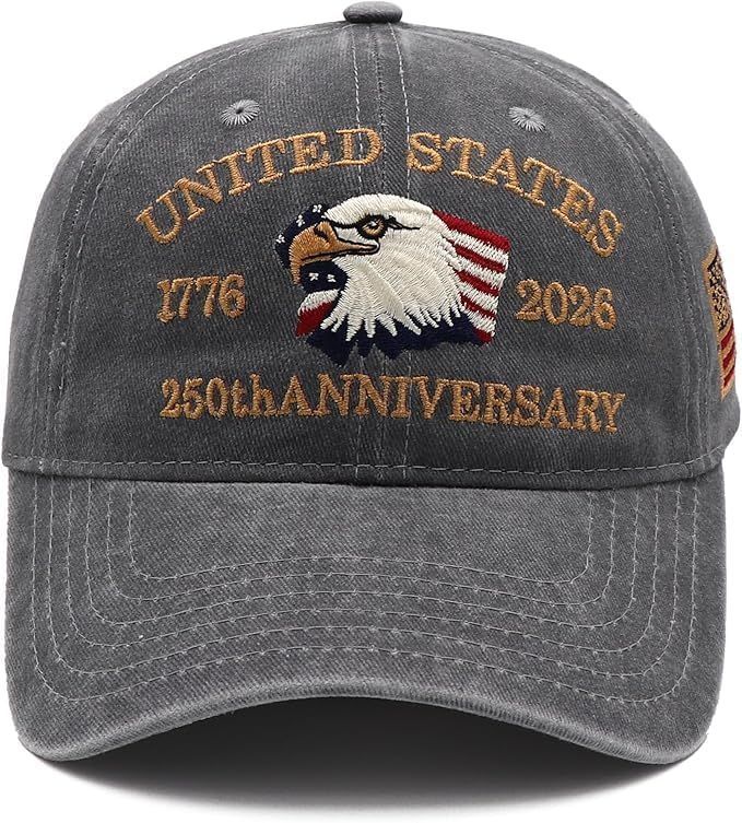 USA 250th Anniversary Hat, Adjustable 250th Anniversary Printed Patriotic Baseball Caps, Tribute Retro Washed Hat